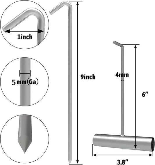 9 Inch Galvanized Tent Stakes Metal Tent Pegs with T Hook, Heavy Duty Steel Yard Camping Stakes Tarp Hooks Inflatables Outdoor Decorations, 25 Pack