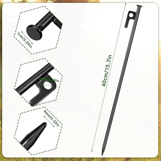 Blulu 24 Pcs 8/12/16 Inch Tent Stakes Heavy Duty Steel Metal Tent Pegs Unbreakable and Inflexible Metal Stakes Tent Spikes for Camping, Yard Decoration, Picnic, Tarp(Black, 16 Inch)