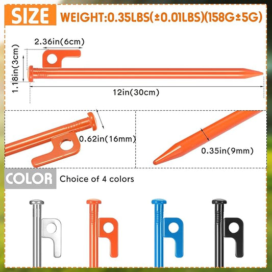 Blulu 24 Pcs 8/12/16 Inch Tent Stakes Heavy Duty Steel Metal Tent Pegs Unbreakable and Inflexible Metal Stakes Tent Spikes for Camping, Yard Decoration, Picnic, Tarp(Orange, 12 Inch)