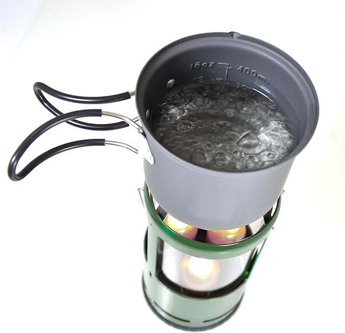 - Heat Shield: Place your mug or cooking pot on the heat shield to heat small amounts of water or food while enjoying warm, ambient light