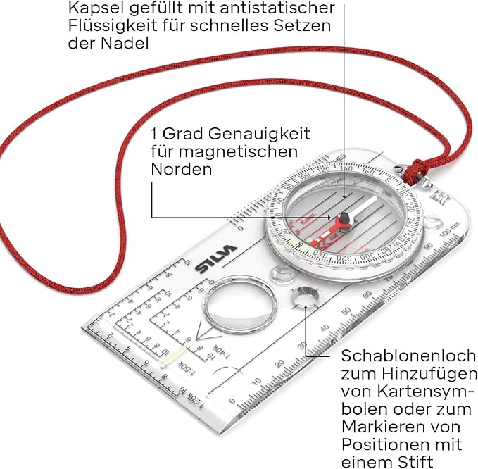 - The magnifying lens and declination scale inside the capsule offer detailed map reading and navigation. Its patented red/black North/South lines provide ease of use and the rotatable compass housing makes it compatible with the Silva 1-2-3 navigation system.