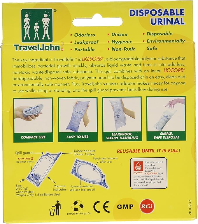 TravelJohn Disposable Urinal for Men, Women & Children 3 units (Pack of 1)