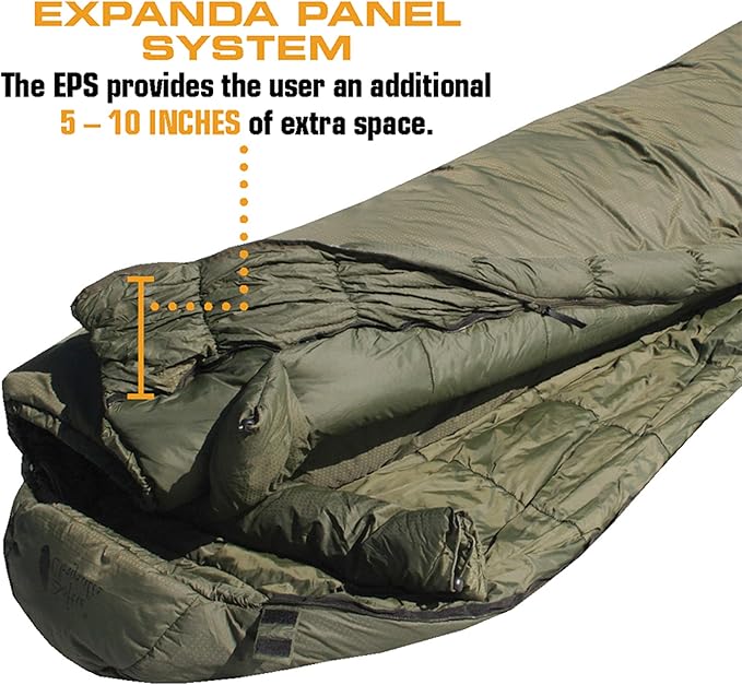 - Equipped with an Expander Panel System that offers 5 to 10 inches of extra space; when not in use, it acts as an extra thick zip baffle to keep out drafts