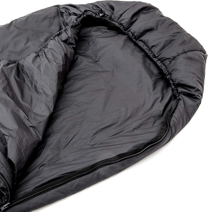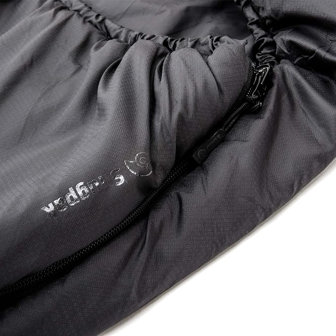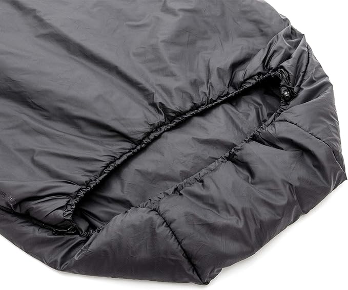 - Designed with a draft collar and hood, an anti-snag two-way zipper, hanging dry tabs, reinforced foot lining, and a stuff sack