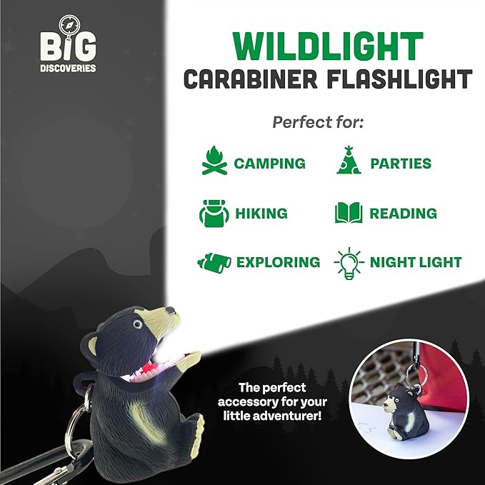 Big Discoveries WildLight Animal Carabiner Flashlight - Fun Mini Keychain Flash Lights for Kids, Nurses, Camping