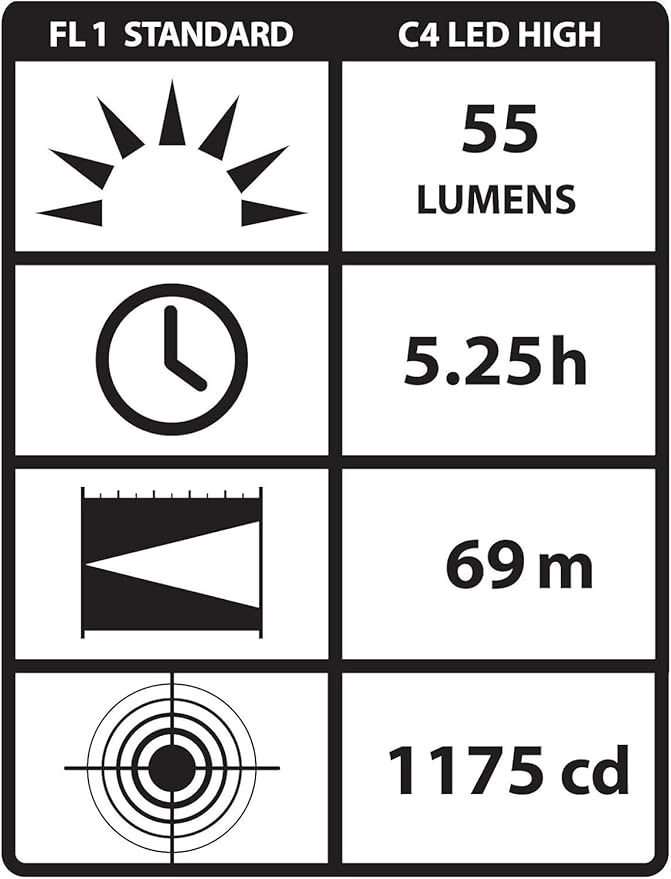 - Each LED Features 4 Levels Of Output Intensities: Low (5 Percent), Medium 1 (25 Percent), Medium 2 (60 Percent), High (100 Percent) Plus A Strobe Function (100 Percent)