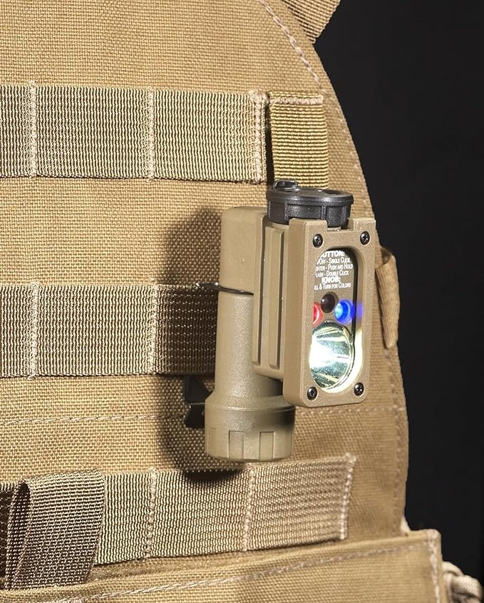 Streamlight 14104 Sidewinder 55-Lumen Compact Hands-Free Military Flashlight with Lithium Battery, White, Red, Blue, IR LEDs, Coyote