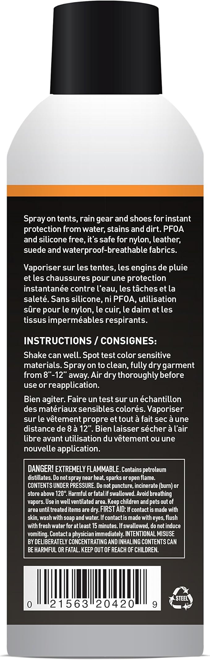 - Use on nylon, leather, and waterproof-breathable materials like GORE-TEX jackets; 5 oz spray-on formula is silicone and PFOA free