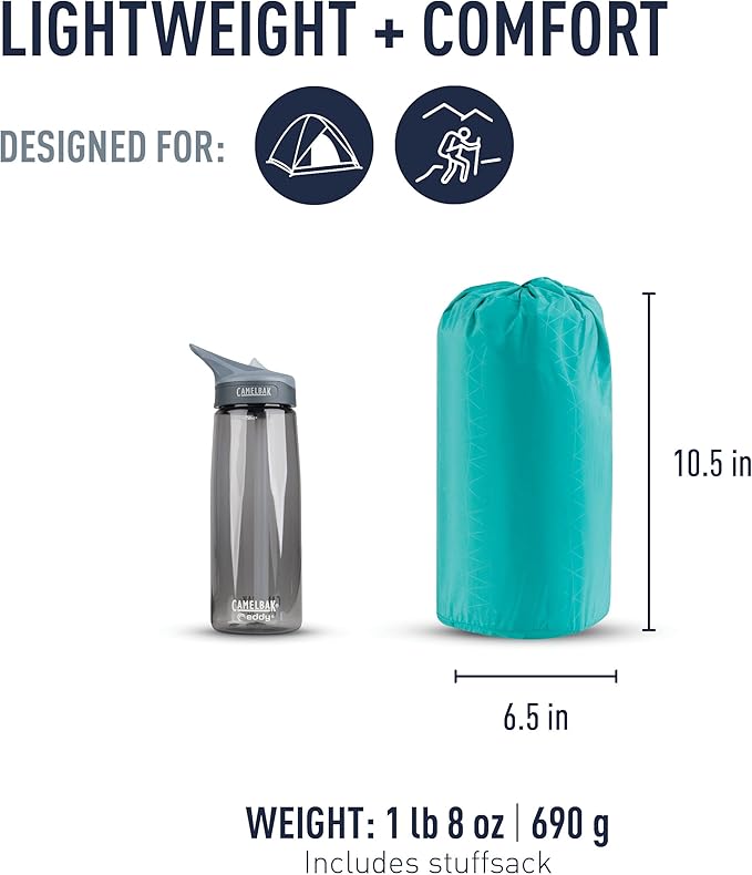 - 3-season, 2-inch thick foam sleeping pad provides a lightweight, yet comfortable women’s-specific sleeping surface for 3-season camping and backpacking