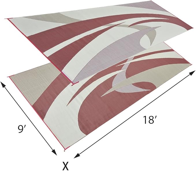 Stylish Camping 159185 9-feet by 18-feet Reversible Mat, Plastic Straw Rug, Large Floor Mat for Outdoors, RV, Patio, Backyard, Picnic, Beach, Camping (Burgundy/Brown)