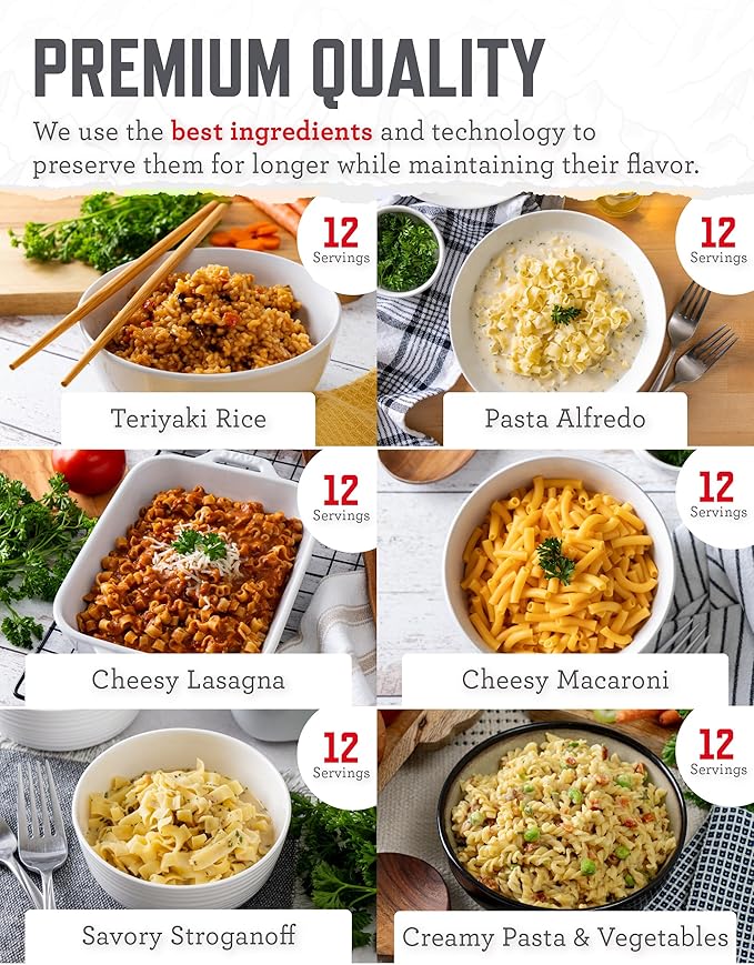 - DIVERSE CULINARY ADVENTURES: Experience a delightful array of 13 different delicious meal options including hearty soup, pasta, tasty rice, and more. These culinary delights aren't just for emergencies – they also make for fantastic companions on backpacking and camping expeditions.