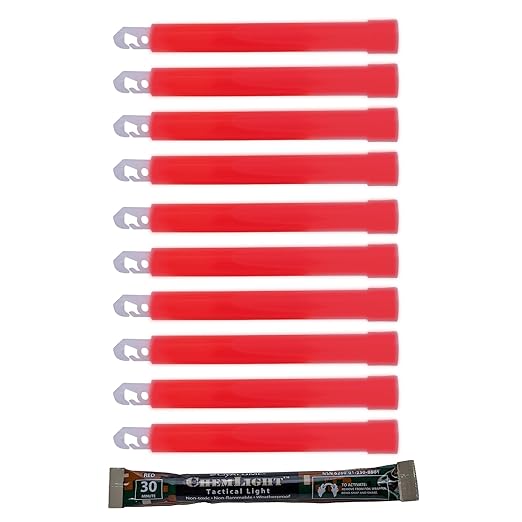 - INTENSE LIGHT OUTPUT FOR 30 MINUTES means you can get the powerful light you need in emergency or safety situations, when electric light isn’t an option. The patented, long-lasting formulations in our ChemLight chemical light sticks provide 30 minutes of 360 degree illumination. The bright red color can be seen from up to a mile away.