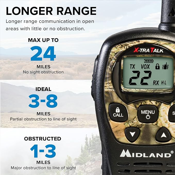 - 24-MILE RANGE - Longer range communication in open areas with little or no obstruction