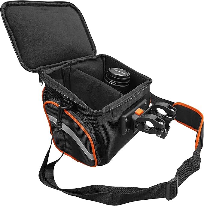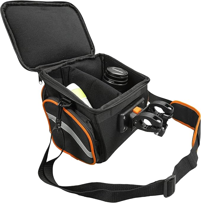 - Quick release mount - Clip-on handlebar bag for camera equipment or other gear. Size adjustable clamp fits most handlebars (22.2 mm–31.8 mm)
