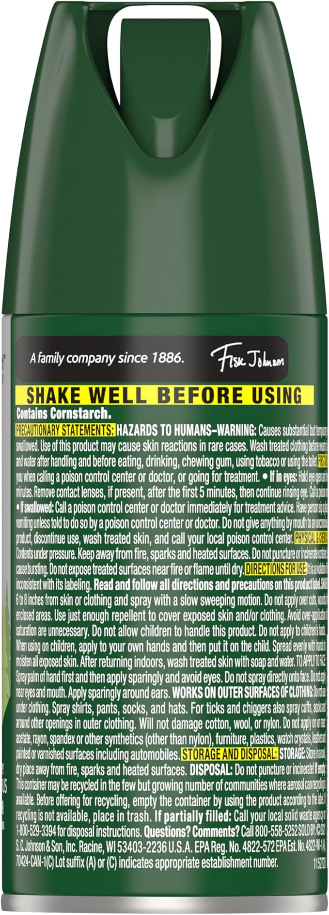 - DEET mosquito repellent formulated with 25% DEET