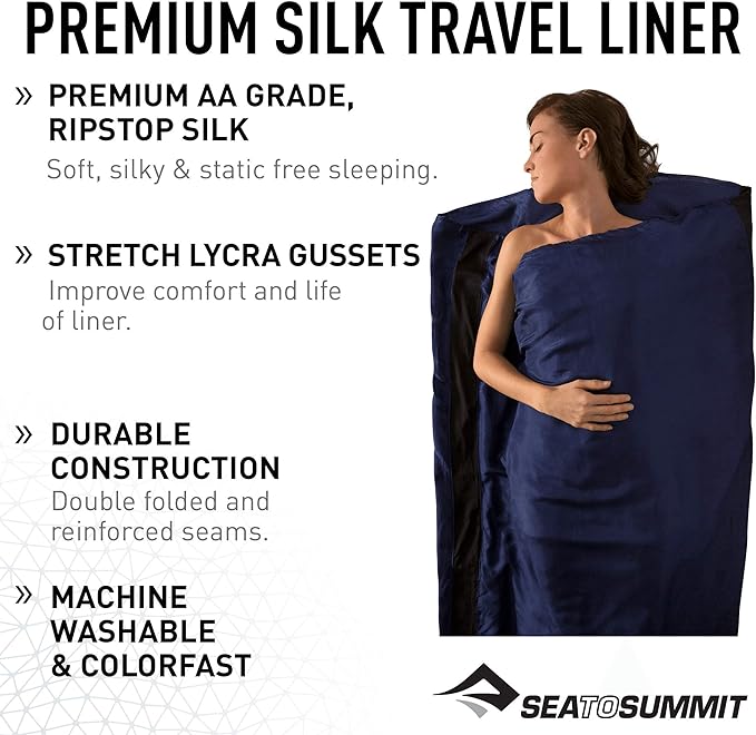 - Ultralight and compact silk sleeping bag liner for backpacking, camping, and travel