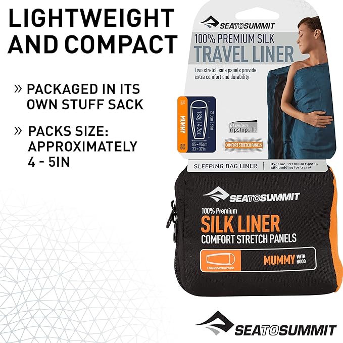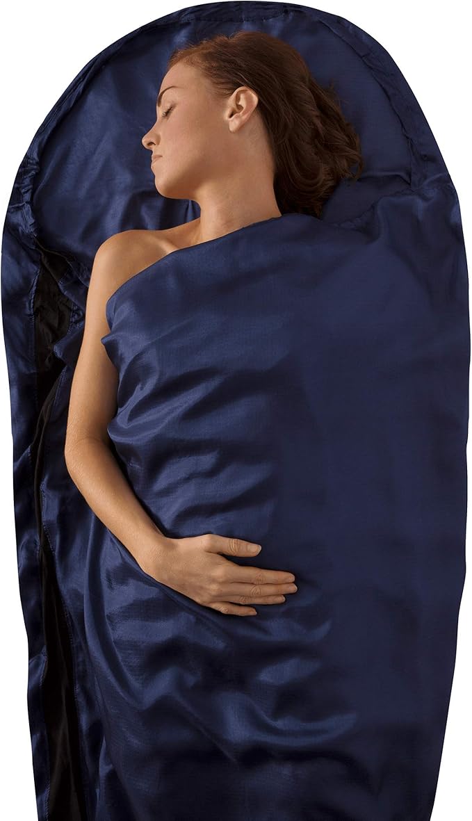 - Ultralight and compact silk sleeping bag liner for backpacking, camping, and travel