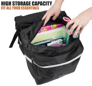 BV Bike Panniers 26L With Adjustable Hooks, Commuter Panniers For Bicycles With Carrying Handle, Bag With 3M Reflective Trim For More Visibility, Fit Most Rack