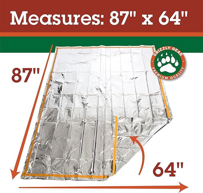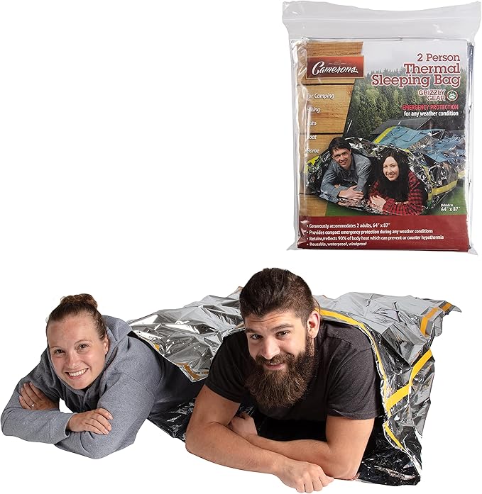 Emergency Survival Mylar Thermal 2 Person Sleeping Bag - Accommodates 2 Adults - 64" X 87"- by Grizzly Gear