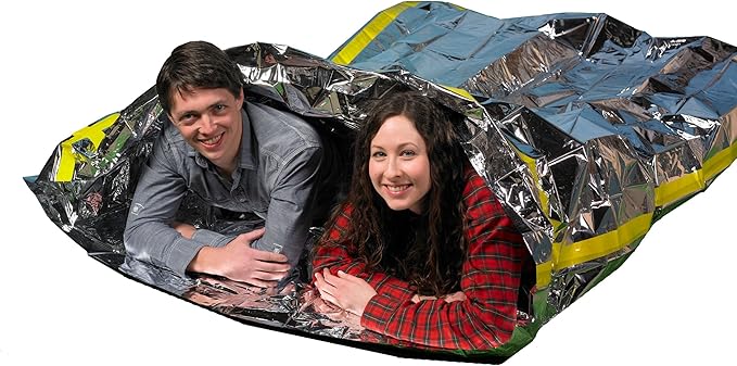 Emergency Thermal Mylar 2 Person Sleeping Bags -Ultra Compact for Camping, Survival, Disaster Bivouac Shelter- Pocket Sized, 7.25ft x 5.25ft - Retains 90% of Body Heat and Repels Wind & Water