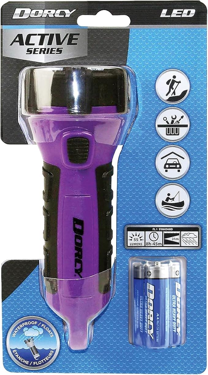 Dorcy 55 Lumen Floating Water Resistant LED Flashlight with Carabineer Clip, Purple (41-2508)