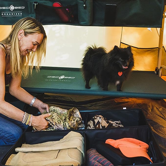 - EXPANDABLE UNDER COT STORAGE: The Footlocker by Disc-O-Bed is designed for convenient storage under your cot, compatible with most cots on the market. Its sloped design ensures it won't interfere with your sleep surface.
