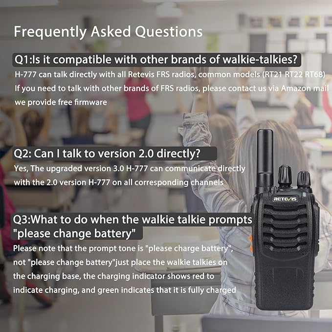 - Our walkie talkies is only FRS walkie talkies; the FCC ID is 2AAR8H777;our walkie talkies meet FCC rule part 95;please buy with confidence