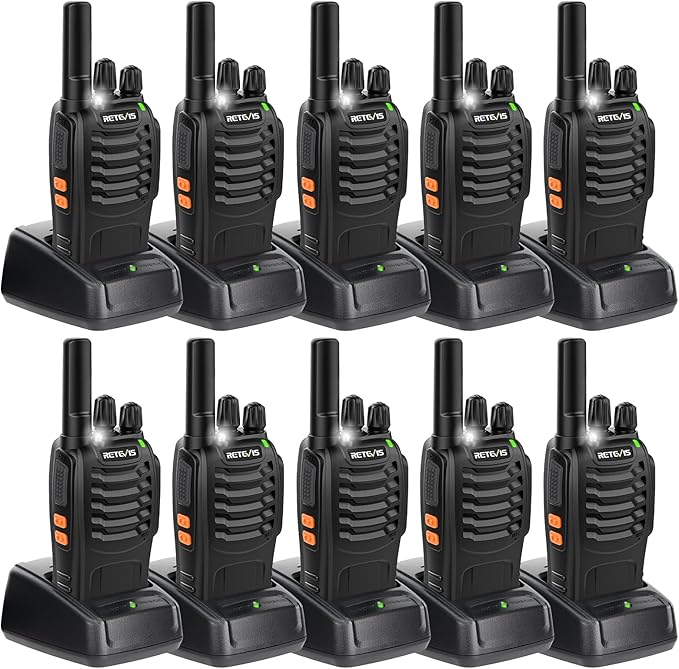 Retevis H-777 2 Way Radios, Walkie Talkies for Adults, Rechargeable Long Range Two Way Radio, Shock Resistant, Short Antenna for Business Education(10 Pack)