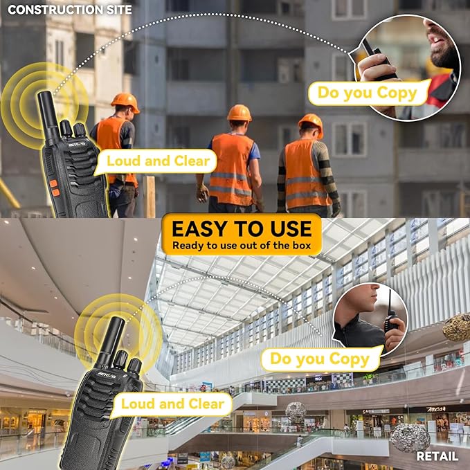 - Walkie talkies long range; suitable for retail; medical; construction; school; church; warehouse and other environments