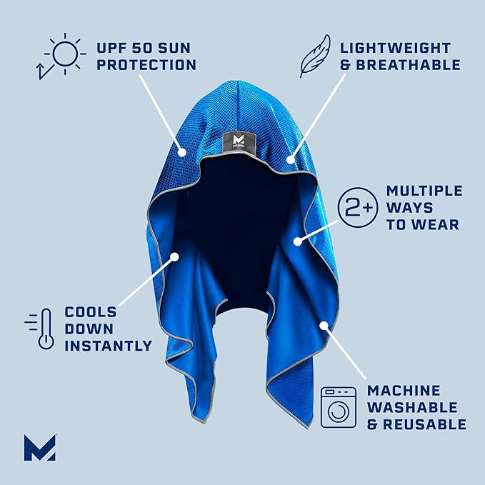 MISSION Cooling Hoodie Towel- Hood Towel, Evaporative Cool Technology, Cools Instantly When Wet, UPF 50 Sun Protection, Contours Your Head to Stay in Place, Great for Sports, Fitness, Gym