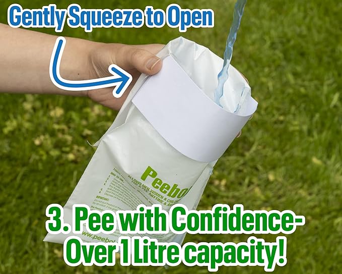 - 🌊 LARGE CAPACITY 🌊 – Will hold up 1 Litre of pee, vomit or other liquids. Reuse your Peebol until it’s full. Ideal for keeping in your rucksack whilst hiking, glove box for traffic jams, and your wallet or purse for emergencies!