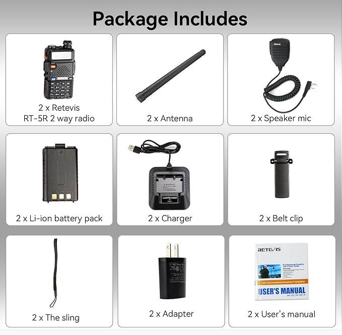 - FCC Certified; please note that our two way radio FCC ID is: 2AAR8RT5R