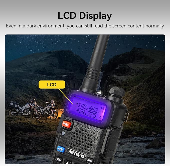 - The walkie talkie with a three-color LCD screen can still be seen even in dark environments; ensuring normal operation