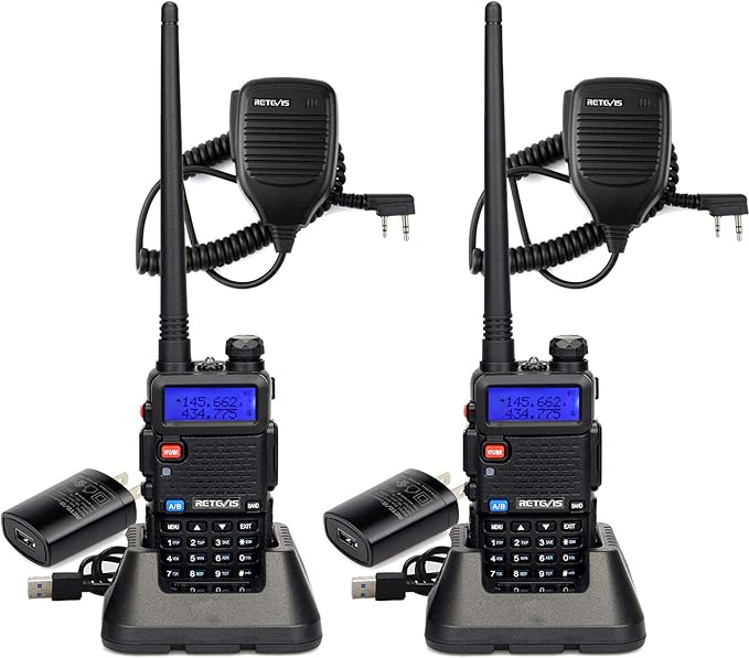 Retevis RT-5R Dual Band Two Way Radio,Ham Radios,with Shoulder Mic,Emergency Alarm,1400mAh Battery,Long Range Walkie Talkies for Amateur Camping Hunting (2 Pack)