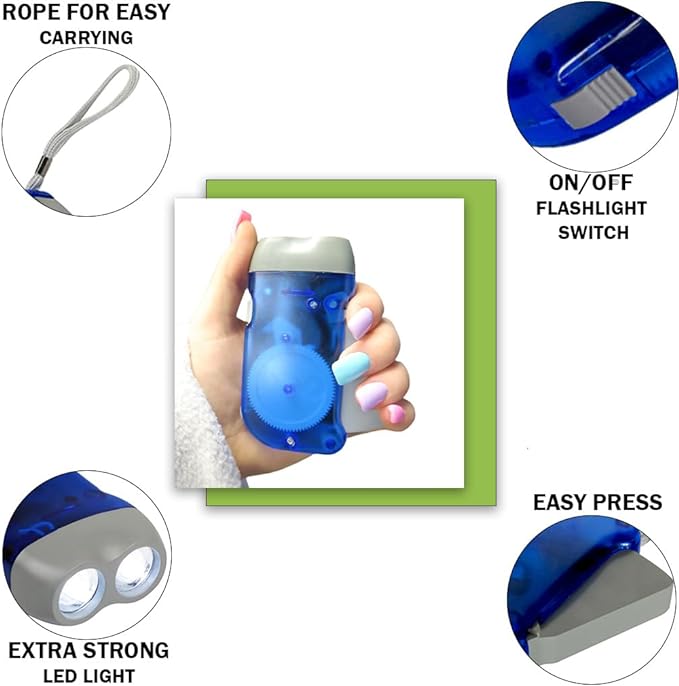 Evelots Hand Crank Emergency Flashlights -4 Pack- Camping, Home, Car - Double LED Bright Lights - Great for Hiking, Outdoor Sports, Power Outage Easy to Use