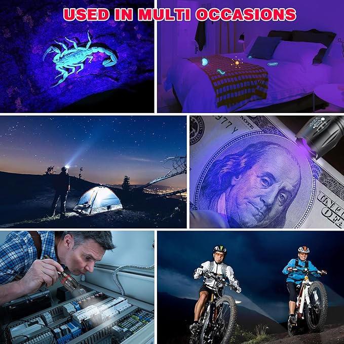 - Multi-use Life Saver: Provided 395 nm wavelength UV light/Black light easier detection of dried pet urine stains, ultraviolet flashlight also can help with nail, antique appraisals, resin curing, finding hidden cracks on repairing
