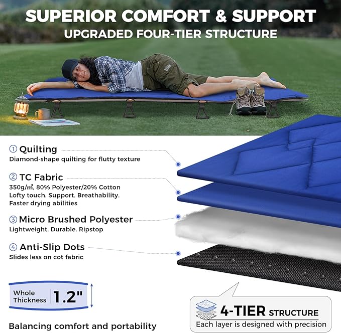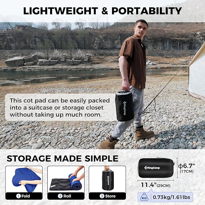 KingCamp Cot Pad Topper for Camping, Soft Warm Non-Slip Cot Mattress, Comfortable Lightweight Sleeping Mat for Outdoor & Indoor, Picnic, Hiking, Backpacking, Yoga