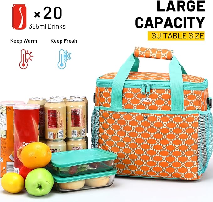 MIER 18L Large Soft Cooler Insulated Picnic Bag for Grocery, Camping, Car, Bright Orange Color