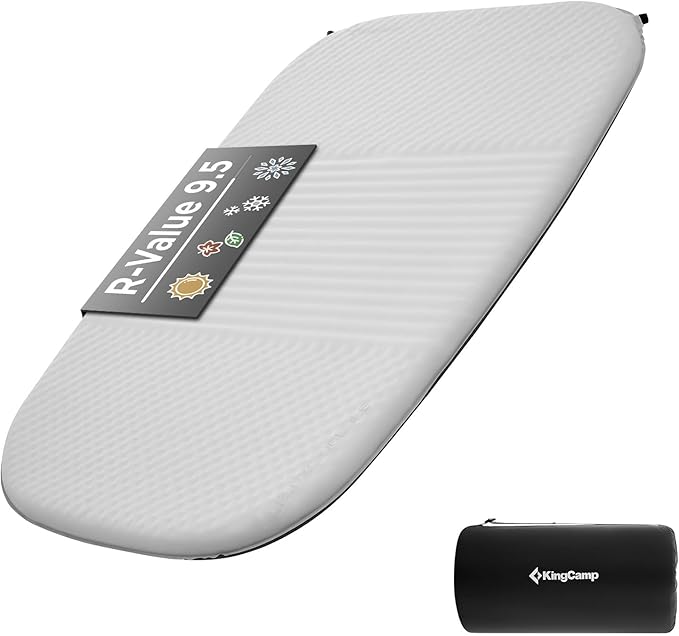 - ULTIMATE COMFORT WITH EXCEPTIONAL DESIGN: The KingCamp Double Sleeping Pad features a honeycomb surface design with high-density foam for excellent elasticity. Its unique shape, wide at the top and narrow at the bottom, reduces weight without sacrificing comfort. At 3 inches thick, this self-inflating air mattress ensures you won't feel uneven ground or sharp rocks, providing you with an exceptional night’s sleep, whether indoors or outdoors.