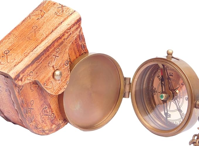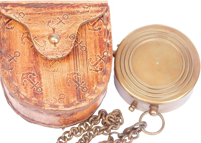 - The compass on chain comes with an impressive hand stitched anchor stamped leather case. Under the glass cover is a beautiful, detailed copper compass that is marked with NEOVIVID. Size-Compass: 50mmX18mm, Leather Case:2.5x2.5x1inches. A free brass keychain is sent along as a gift.