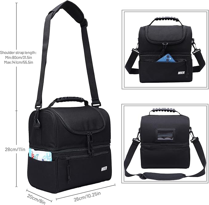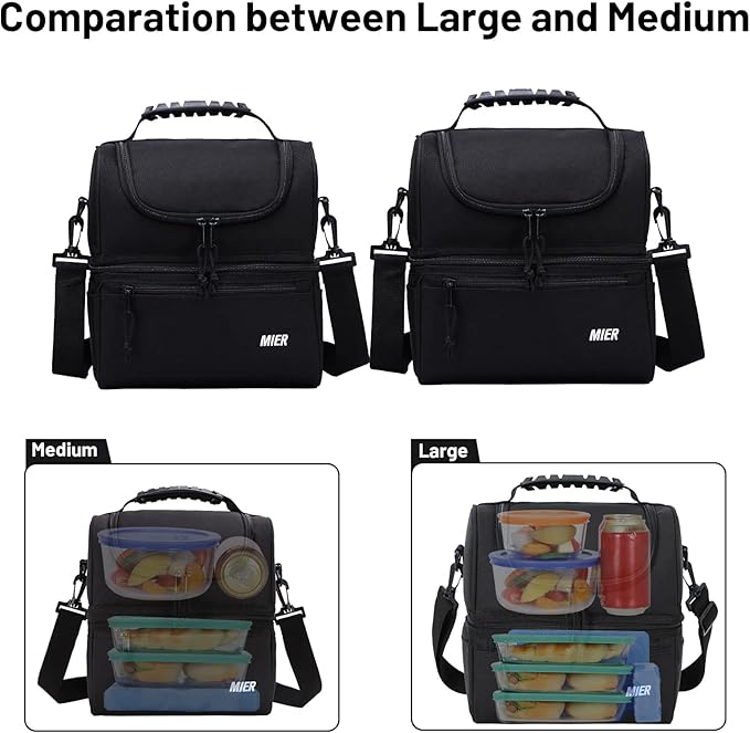 MIER Adult Lunch Box Insulated Lunch Bag Large Cooler Tote Bag for Men, Women, Double Deck Cooler(Black Large)