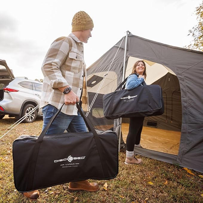 Disc-O-Bed Large Outdoor Convertible 2 Person Bench and Double Camping Cot Portable Bed Bunk System for Adults, Black