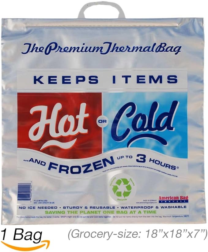 - Insulated Bags keep items hot or cold and frozen for up to THREE hours at a time ^100% recyclable