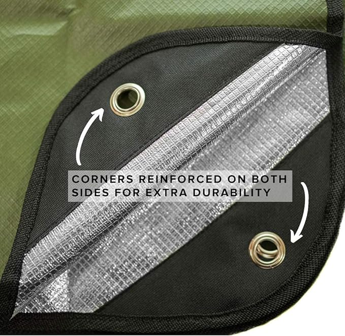 - 4 REINFORCED TIE-DOWN GROMMETS: The grommets allow this survival blanket to be hung with ease or secured to reflect/deflect heat, and create a waterproof shelter. We test these grommets constantly and regularly make improvements.