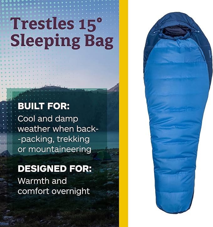Marmot Men's Trestles 15° Sleeping Bag | Insulated, Water-Resistant, Left-Zip, Cobalt Blue/Blue Night