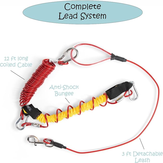 - 🐶 Anti-shock coiled lead line – Our Plastic-coated galvanized steel coiled cable is tough with an over 900 lb breaking strength, creating strong dog runs for outside. It also offers the safety factor of an anti-shock bungee to help your dog with a softer slow down at the end of the zipline trolley versus a harsh tug of a standard cable or chain. This dog runner cable is sure to be a hit, giving them the freedom they deserve.