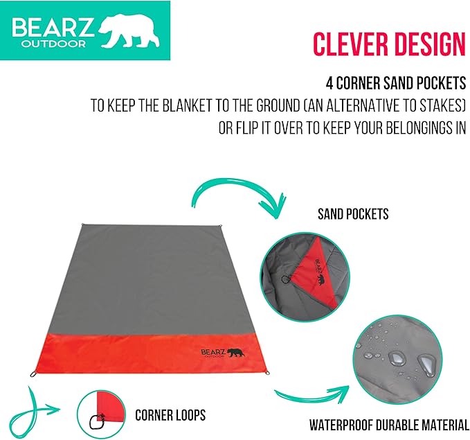 - Why BEARZ Outdoor – We care about our products, and most of all, we care about our customers. Every little detail has been thought out to make these waterproof, lightweight, and durable outdoor blankets from their vibrant colors and intricate stitching to the hidden corner pockets and other unique added accessories. If you ever have any questions at all, contact us and we promise to take good care of you!