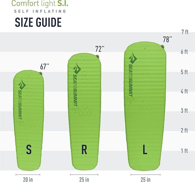 Sea to Summit Comfort Light Self-Inflating Foam Sleeping Pad for Camping and Backpacking, Small (49 x 20 x 2 inches)