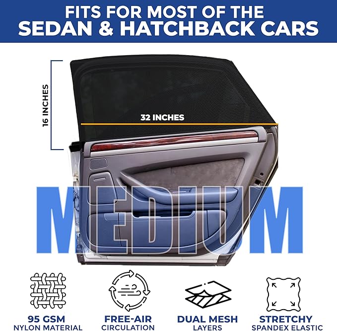 EcoNour Car Window Screens for Camping (Pack of 2) | 100% Protection from Bugs, UV and Mosquito Net | Breathable Mesh Baby Window Covers for Privacy Blackout (Medium 32"x16") | Car Window Accessories