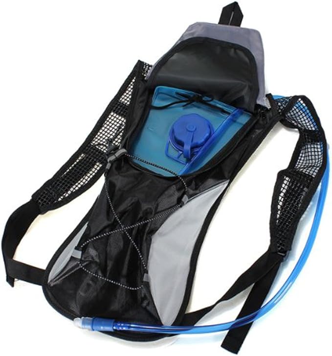 • Hydration Backpack & Water Bladder - Hydration Size:19" x 10" x 2". Hydration backpack with a bladder designed to hold drinking water and a tube with a spout for drinking. Free 70-Ounce (2 Liter) hydration bladder.